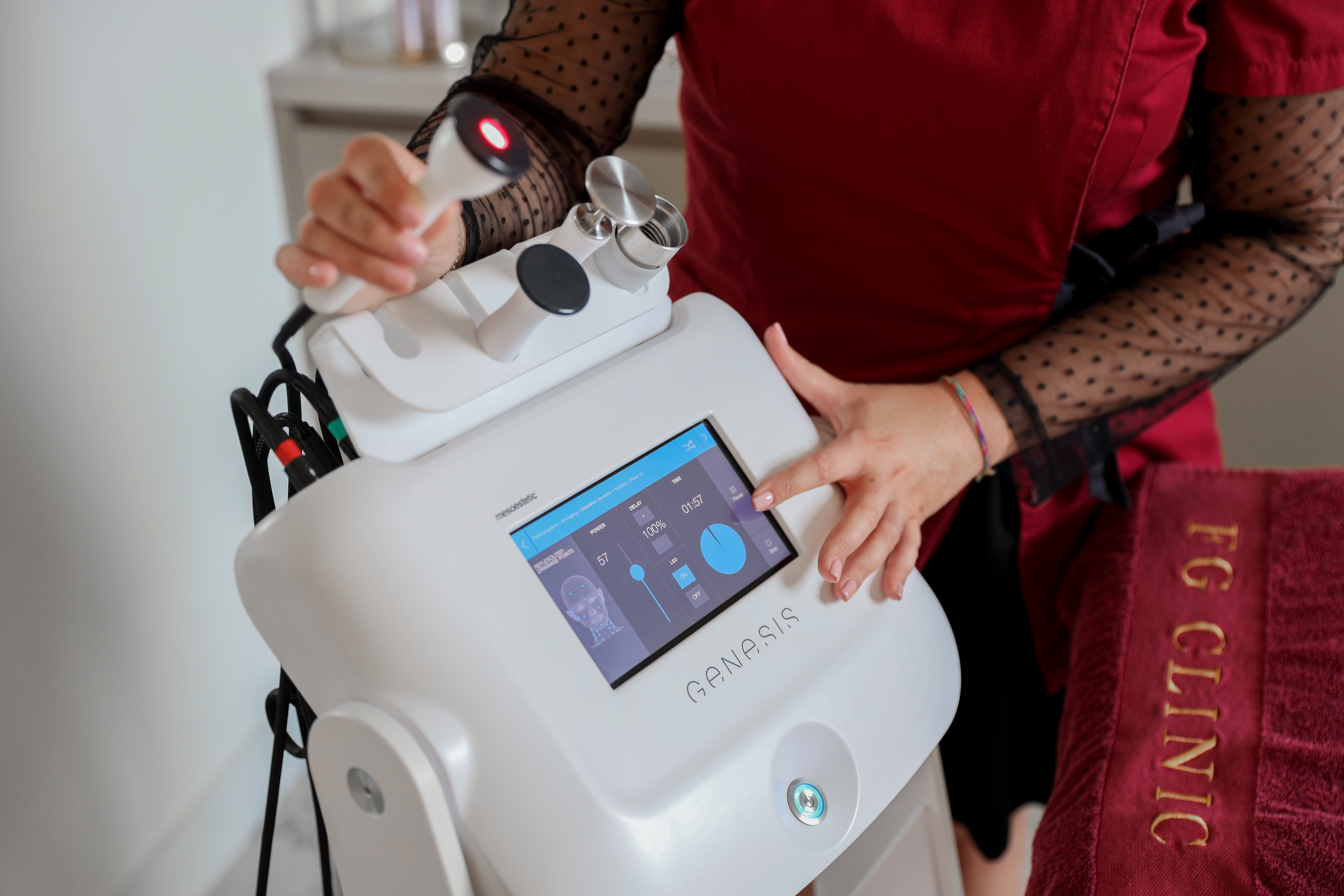 De Genesis behandeling bij FG Clinic is een geavanceerde, niet-invasieve huidverjongingsbehandeling met het Genesis apparaat van Mesoestetic. Dit innovatieve apparaat combineert meerdere technologieën om de huid zichtbaar te verbeteren en te revitaliseren, zowel in het gezicht als op het lichaam.